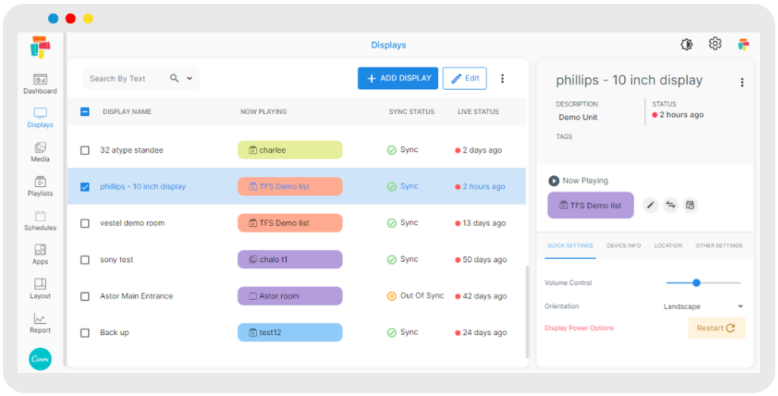 - Generate Proof of Play Reports: Verify content playback for media assets, displays, or playlists.